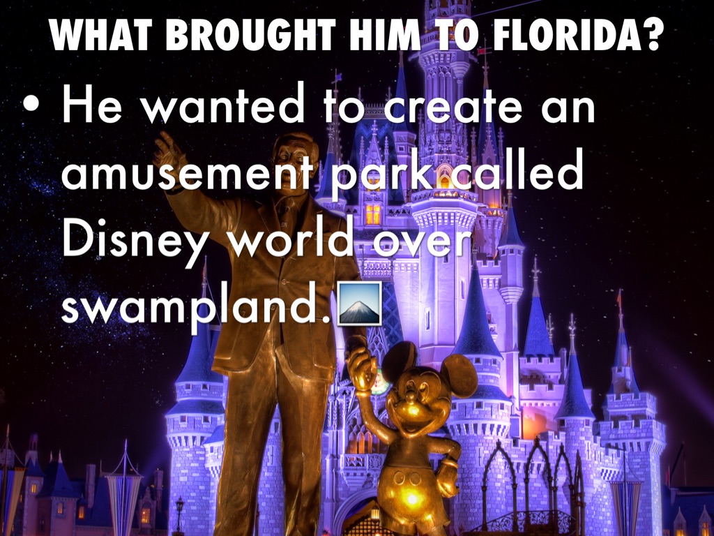 He wanted to create an amusement park called Disney world over swampland.🗻