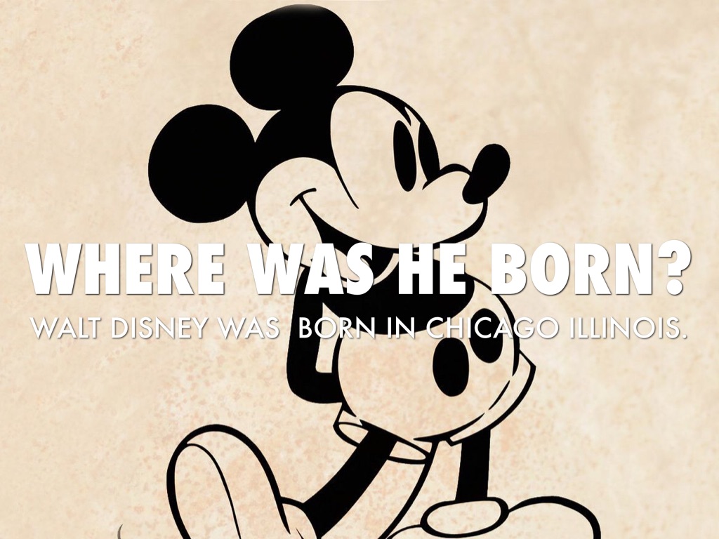 WALT DISNEY WAS BORN IN CHICAGO ILLINOIS.