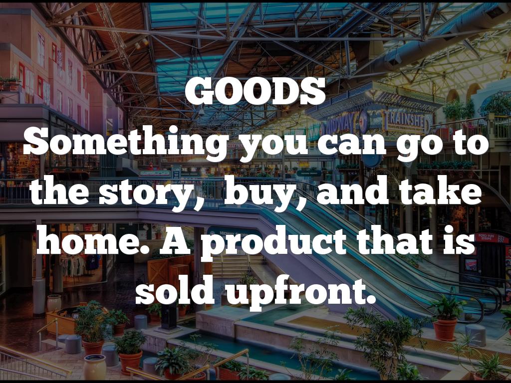 Something you can go to the story, buy, and take home. A product that is sold upfront.