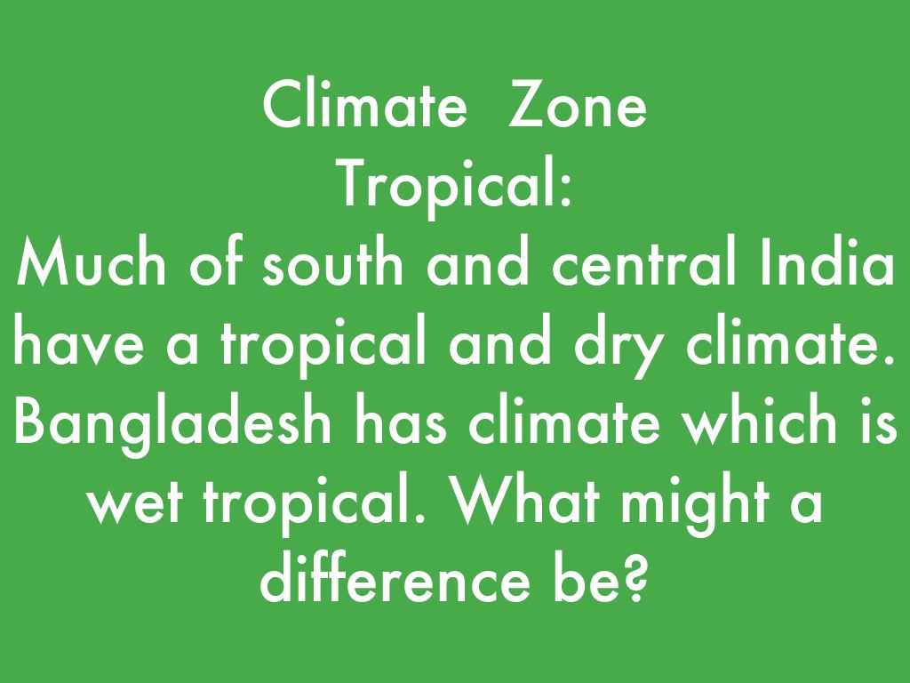Much of south and central India have a tropical and dry climate. Bangladesh has climate which is wet tropical. What might a difference be?