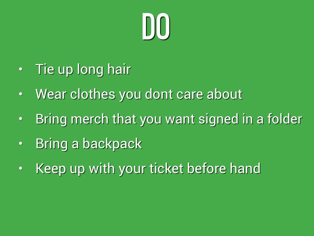 - Bring merch that you want signed in a folder
