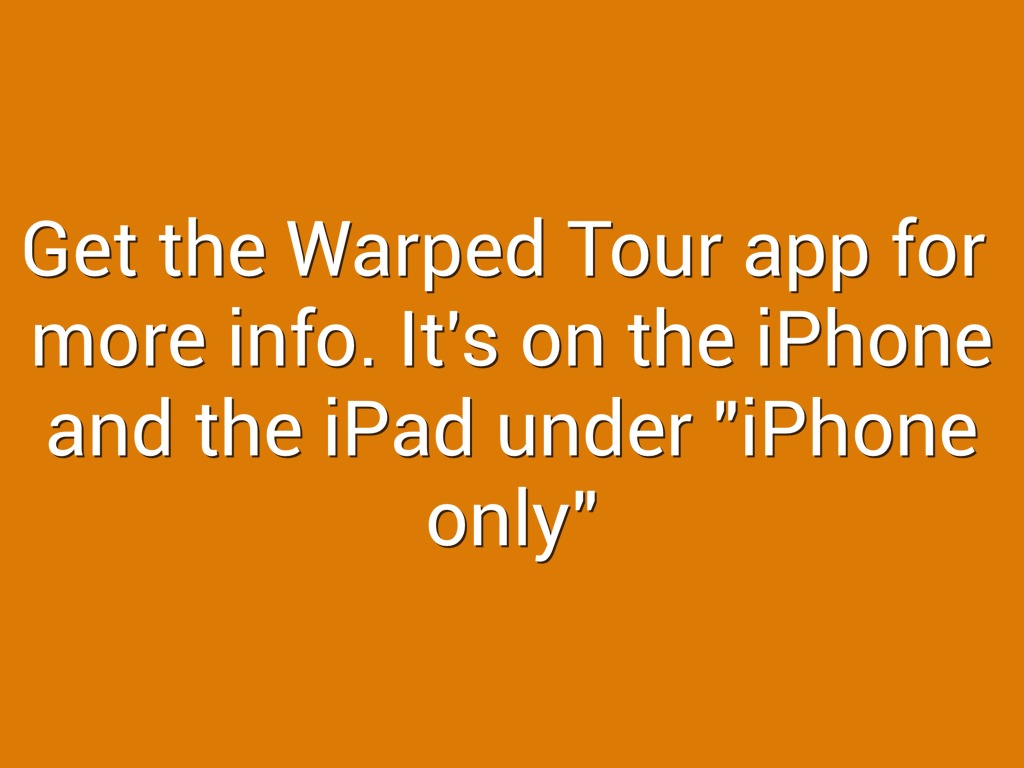 Get the Warped Tour app for more info. It's on the iPhone and the iPad under "iPhone only"