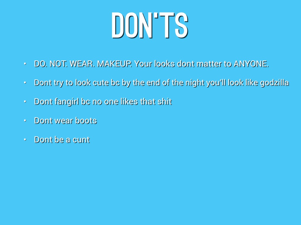 - Dont fangirl bc no one likes that shit