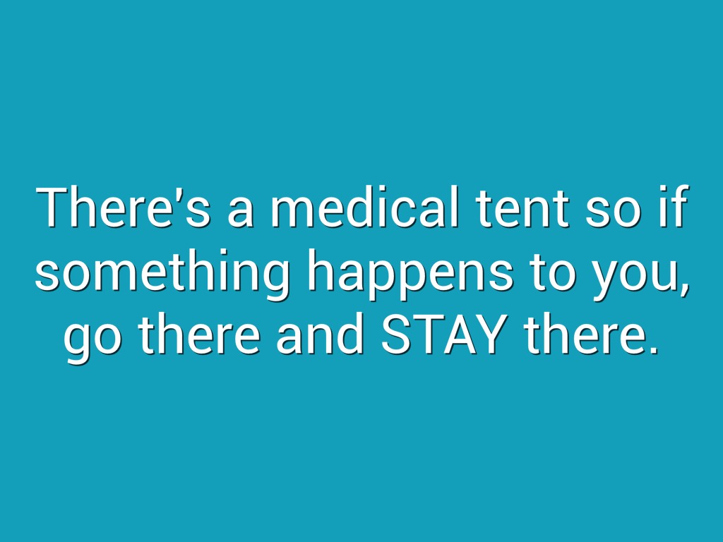 There's a medical tent so if something happens to you, go there and STAY there.