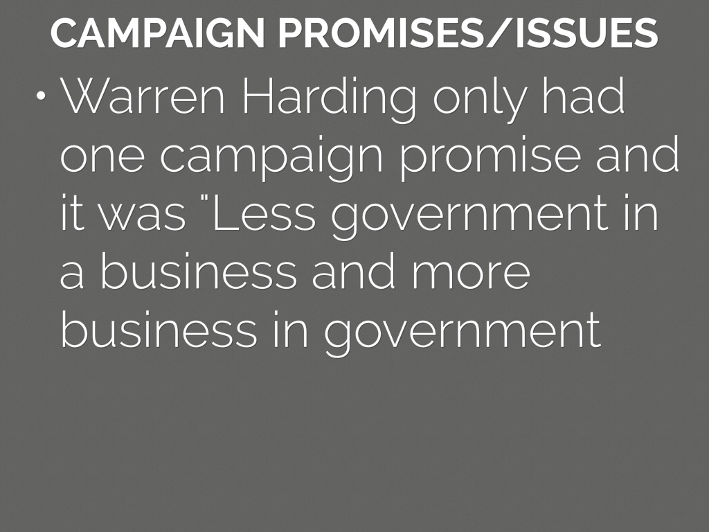 Warren Harding only had one campaign promise and it was "Less government in a business and more business in government