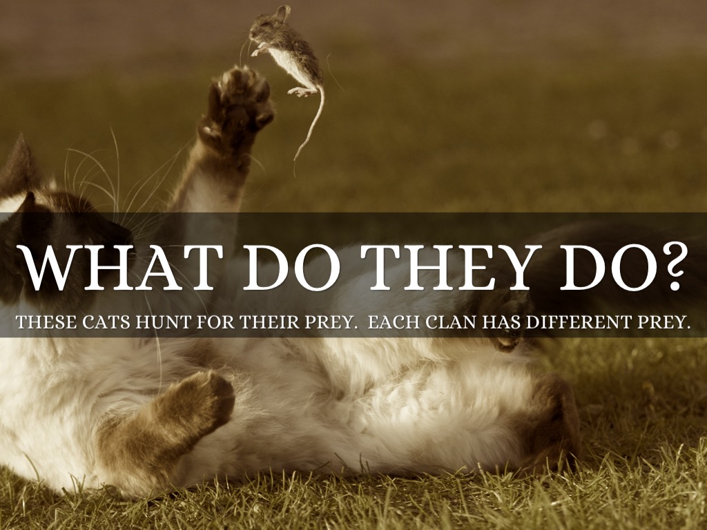 THESE CATS HUNT FOR THEIR PREY. EACH CLAN HAS DIFFERENT PREY.