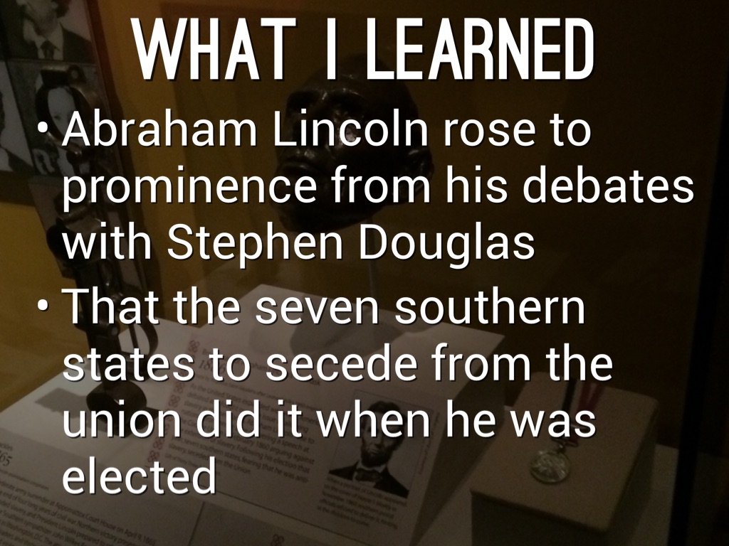 • Abraham Lincoln rose to prominence from his debates with Stephen Douglas