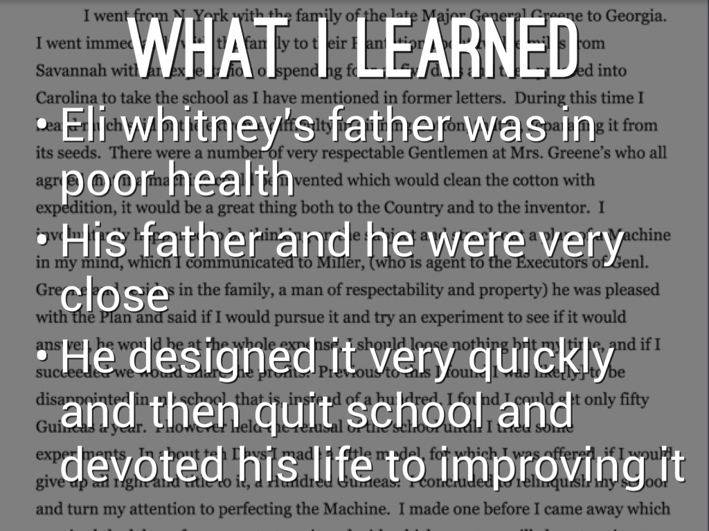 ABOUT HIS INVENTION OF THE COTTON GIN
