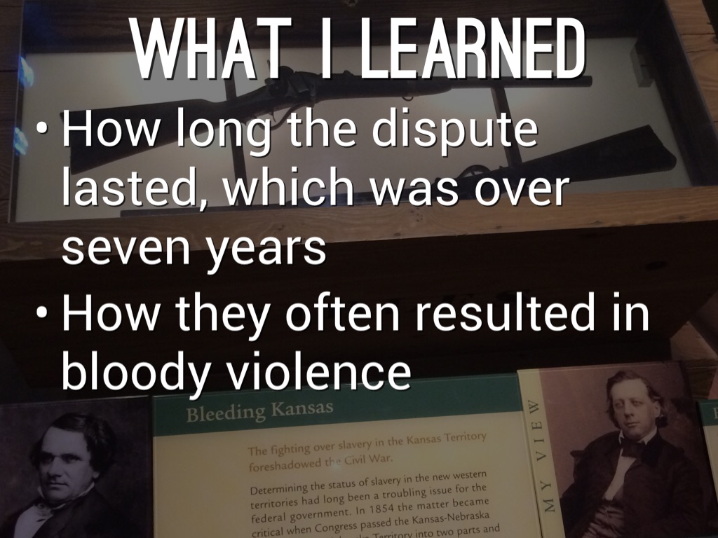 • “Far in the West rolls the thunder – The tumult of battle is raging Where bleeding Kansas is waging War against Slavery” -The New York Tribune, Charles C. Weyman, 1856