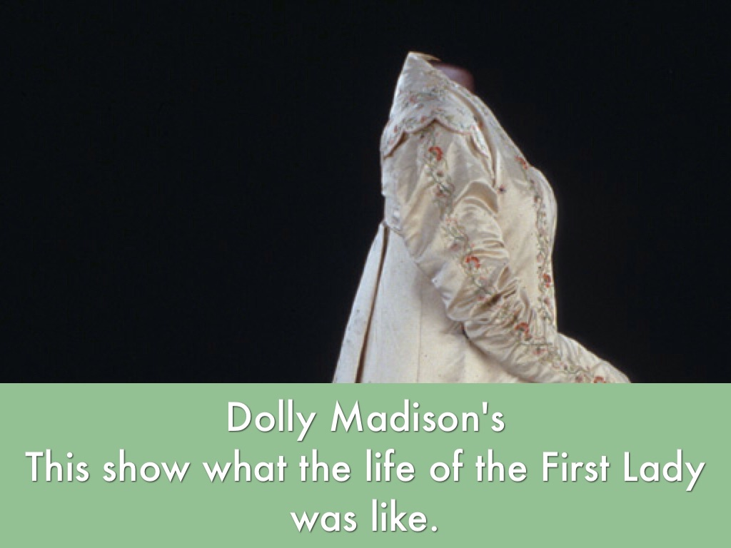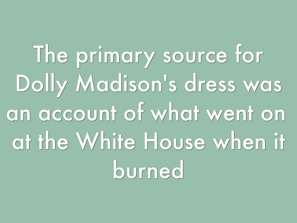 The primary source for Dolly Madison's dress was an account of what went on at the White House when it burned