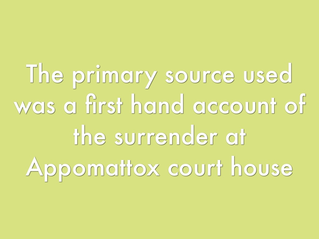 The primary source used was a first hand account of the surrender at Appomattox court house