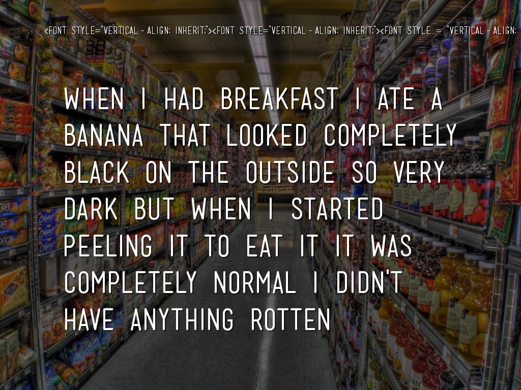 when i had breakfast i ate a banana that looked completely black on the outside so very dark but when i started peeling it to eat it it was completely normal i didn't have anything rotten