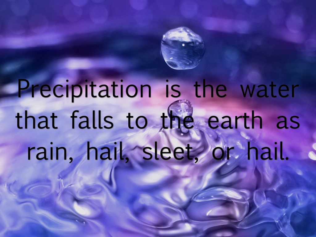Precipitation is the water that falls to the earth as rain, hail, sleet, or hail.