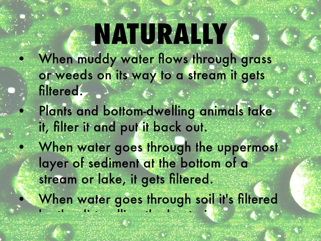 When muddy water flows through grass or weeds on its way to a stream it gets filtered.