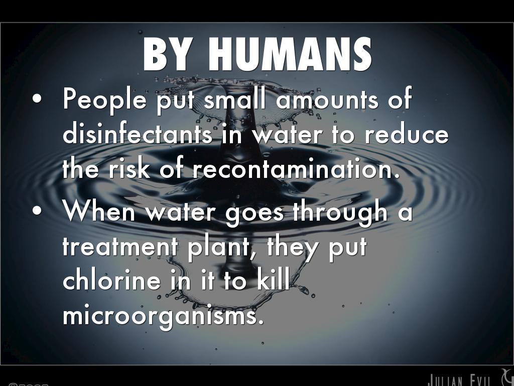 When water goes through a treatment plant, they put chlorine in it to kill microorganisms.