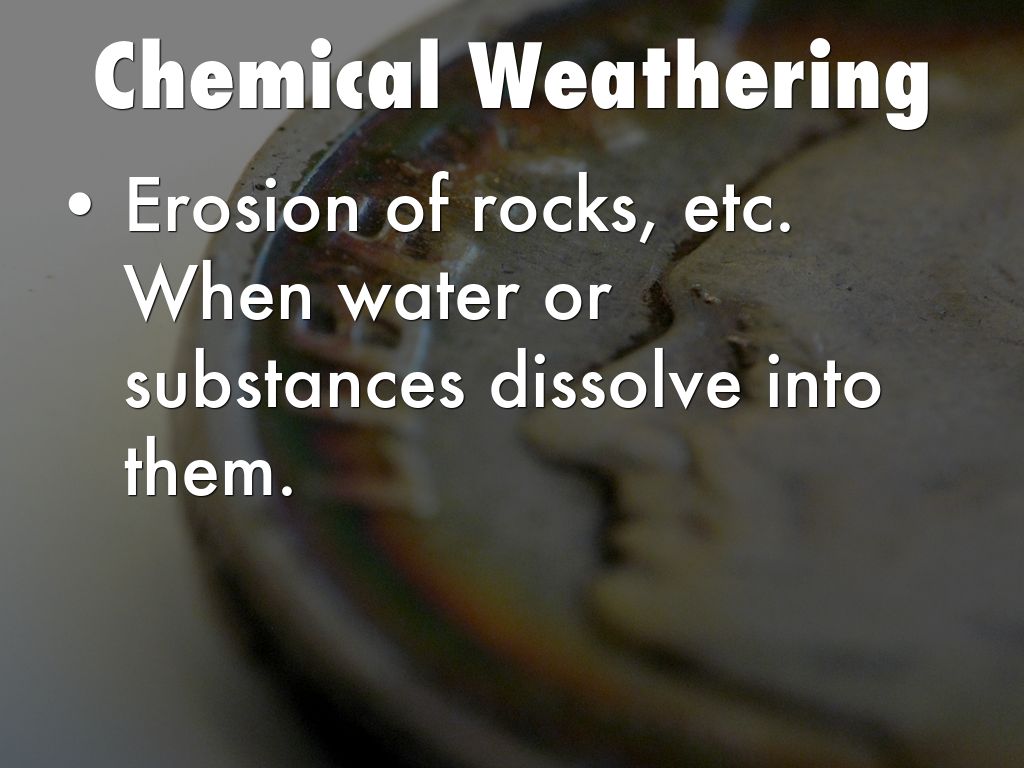 Erosion of rocks, etc. When water or substances dissolve into them.