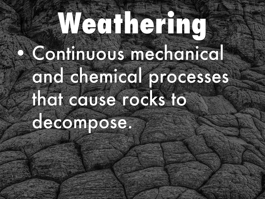 Continuous mechanical and chemical processes that cause rocks to decompose.
