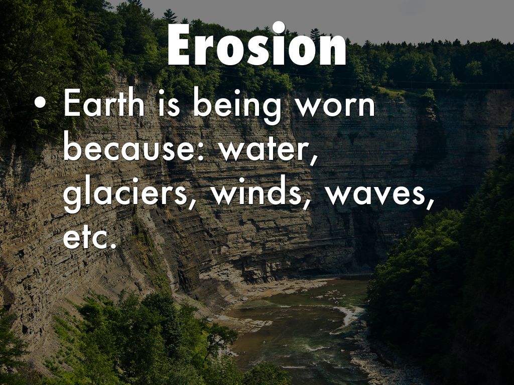 Earth is being worn because: water, glaciers, winds, waves, etc.