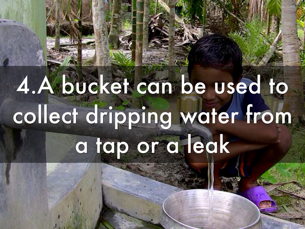 4.A bucket can be used to collect dripping water from a tap or a leak