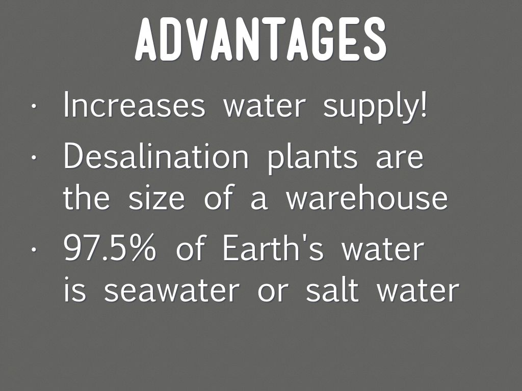 - The installed cost of desalination plants is approximately $1m for every 1,000 cubic meters per day of installed capacity.