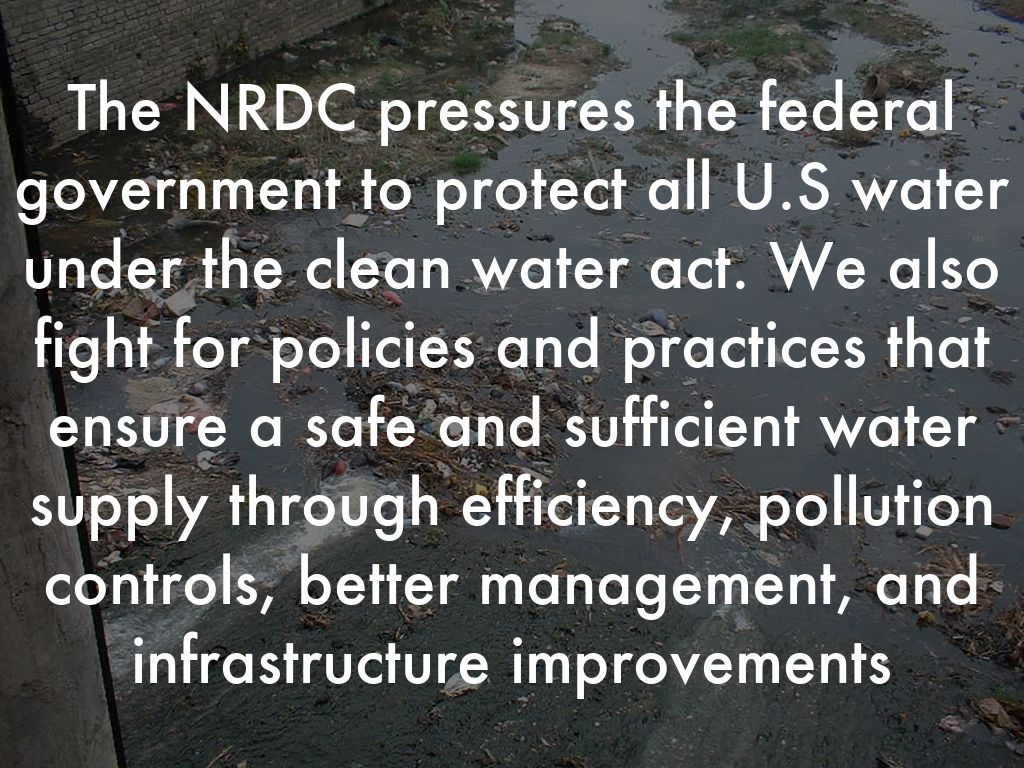 The NRDC pressures the federal government to protect all U.S water under the clean water act. We also fight for policies and practices that ensure a safe and sufficient water supply through efficiency, pollution controls, better management, and infrastructure improvements