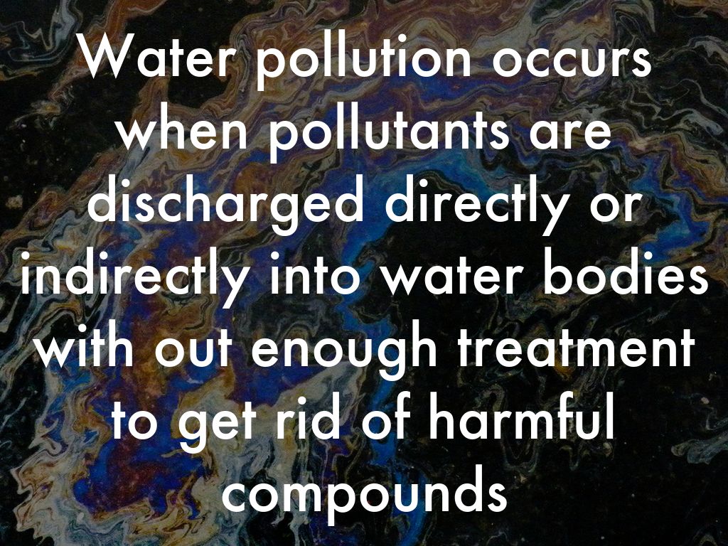 Water pollution occurs when pollutants are discharged directly or indirectly into water bodies with out enough treatment to get rid of harmful compounds