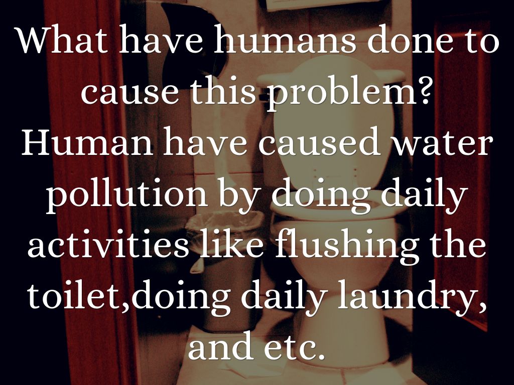 What have humans done to cause this problem? Human have caused water pollution by doing daily activities like flushing the toilet,doing daily laundry, and etc.