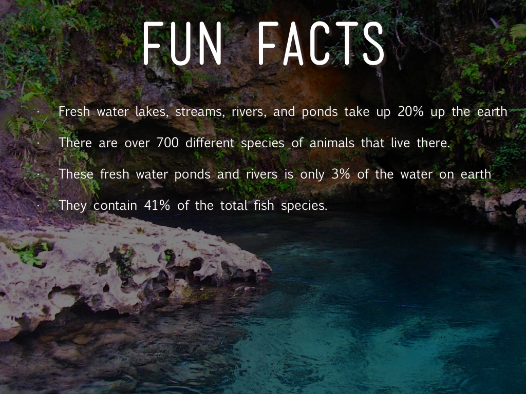 • These fresh water ponds and rivers is only 3% of the water on earth