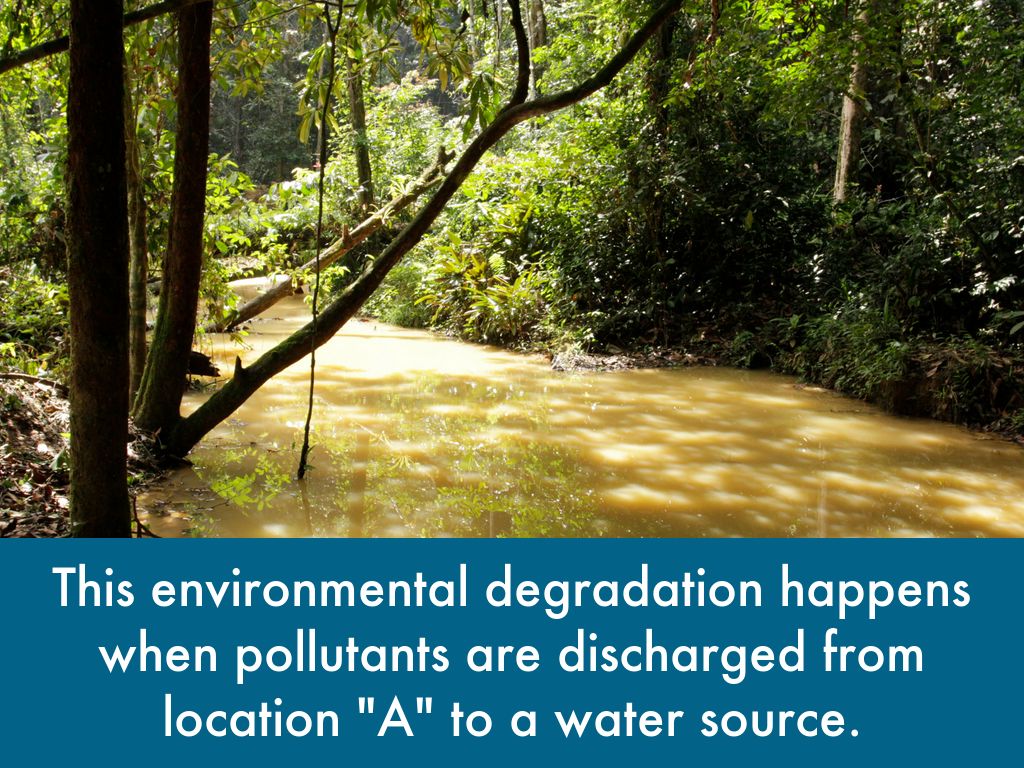 This environmental degradation happens when pollutants are discharged from location "A" to a water source.