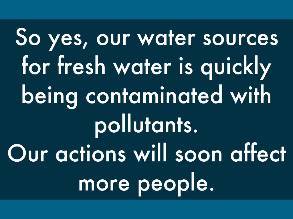 So yes, our water sources for fresh water is quickly being contaminated with pollutants.