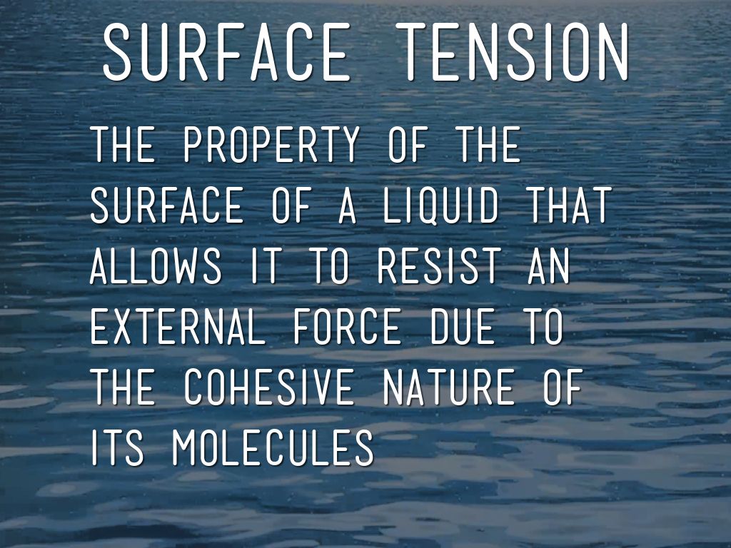The property of the surface of a liquid that allows it to resist an external force due to the cohesive nature of its molecules