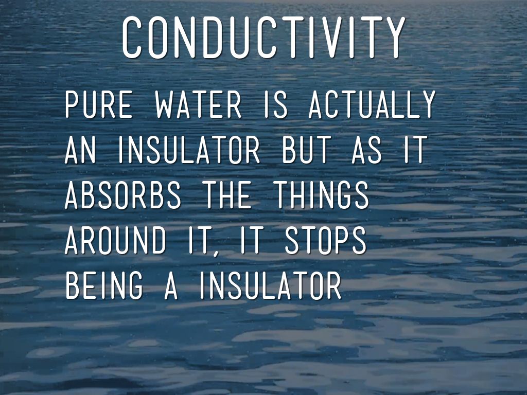 Pure water is actually an insulator but as it absorbs the things around it, it stops being a insulator