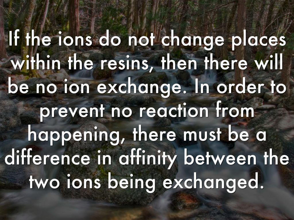 If the ions do not change places within the resins, then there will be no ion exchange. In order to prevent no reaction from happening, there must be a difference in affinity between the two ions being exchanged.