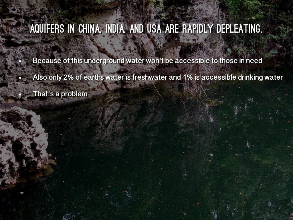 AQUIFERS IN CHINA, INDIA, AND USA ARE RAPIDLY DEPLEATING.