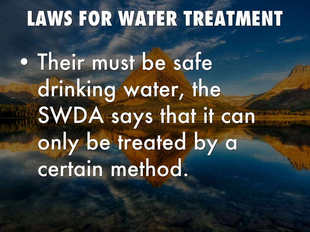 Their must be safe drinking water, the SWDA says that it can only be treated by a certain method.