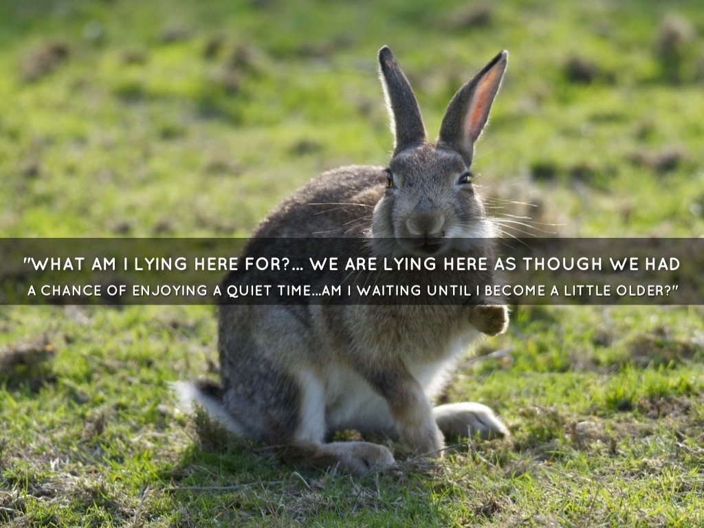 "WHAT AM I LYING HERE FOR?... WE ARE LYING HERE AS THOUGH WE HAD