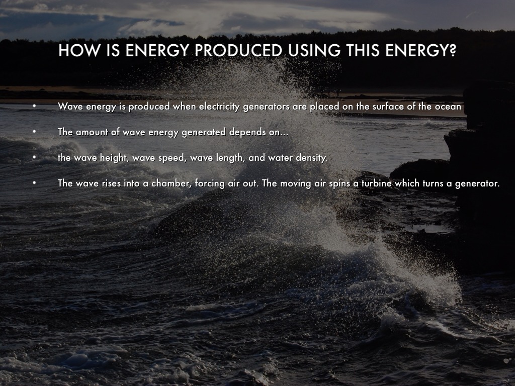 Wave energy is produced when electricity generators are placed on the surface of the ocean