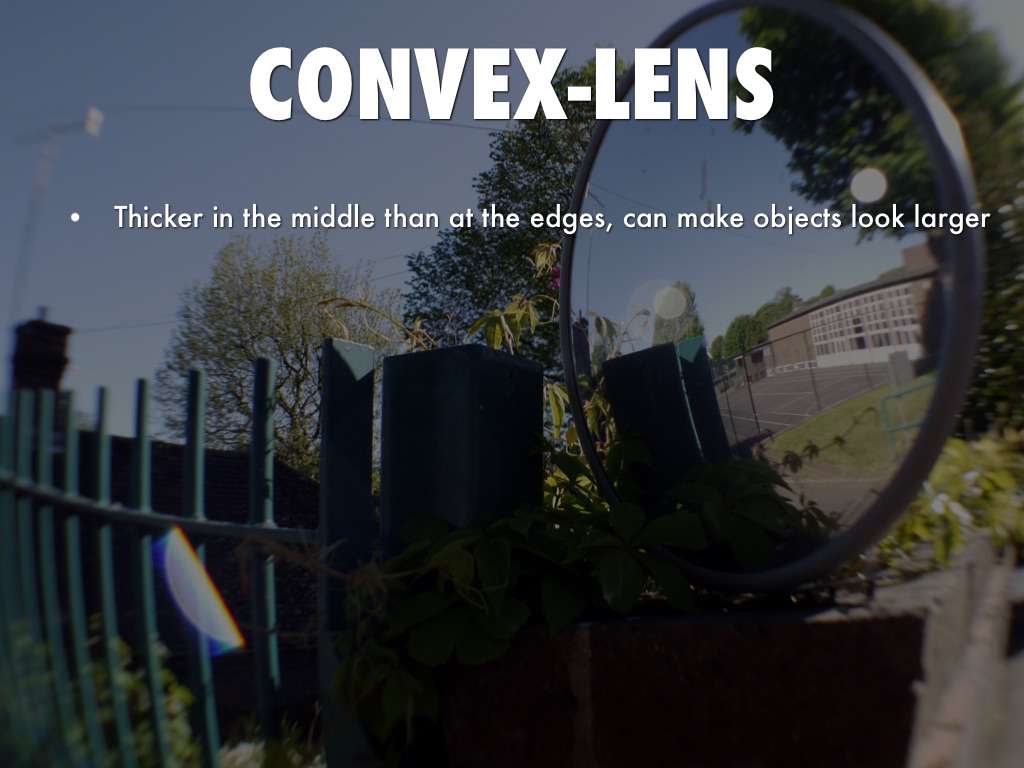 • Thicker in the middle than at the edges, can make objects look larger