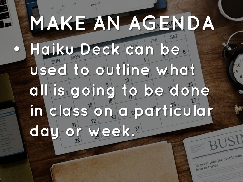 Haiku Deck can be used to outline what all is going to be done in class on a particular day or week.