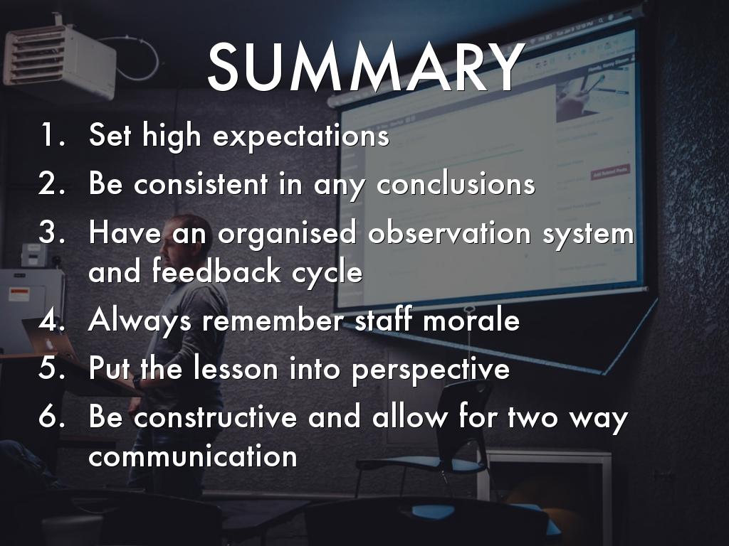 • Ensure observers are trained in house and confident on what to focus on during the observation