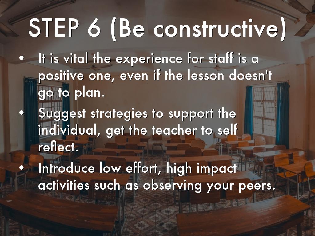 • It is vital the experience for staff is a positive one, even if the lesson doesn't go to plan.