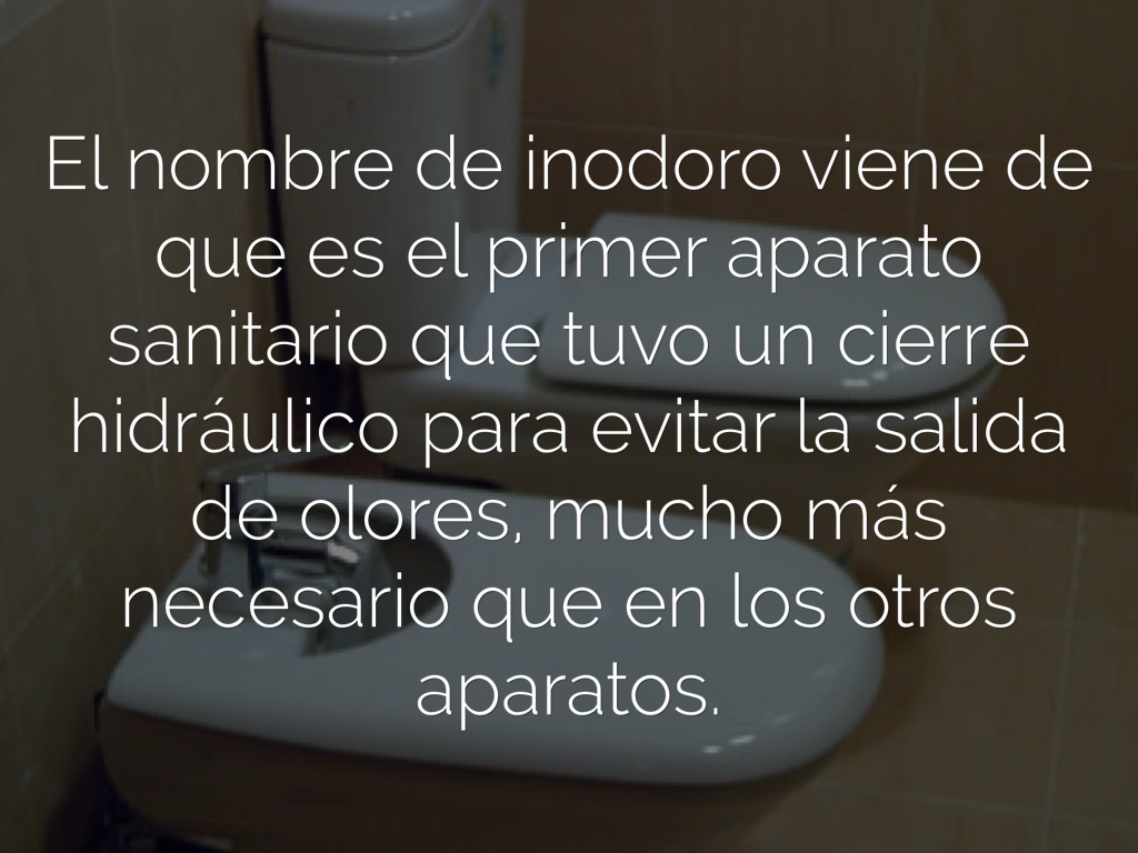 El nombre de inodoro viene de que es el primer aparato sanitario que tuvo un cierre hidráulico para evitar la salida de olores, mucho más necesario que en los otros aparatos.
