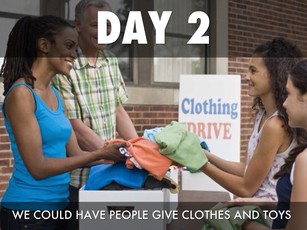 WE COULD HAVE PEOPLE GIVE CLOTHES AND TOYS