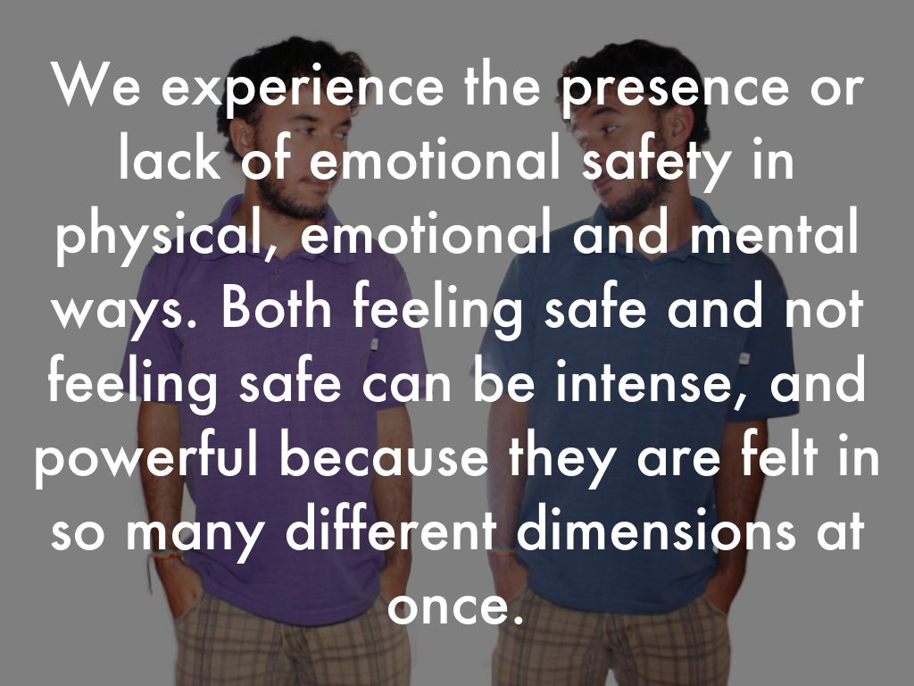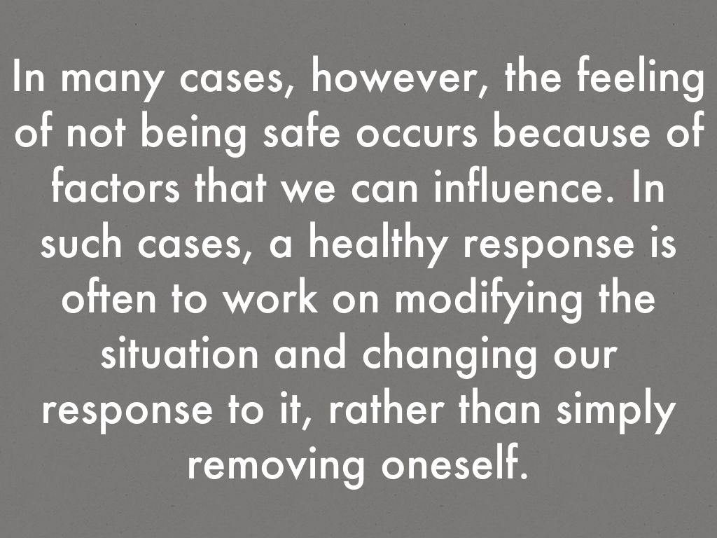 In many cases, however, the feeling of not being safe occurs because of factors that we can influence. In such cases, a healthy response is often to work on modifying the situation and changing our response to it, rather than simply removing oneself.