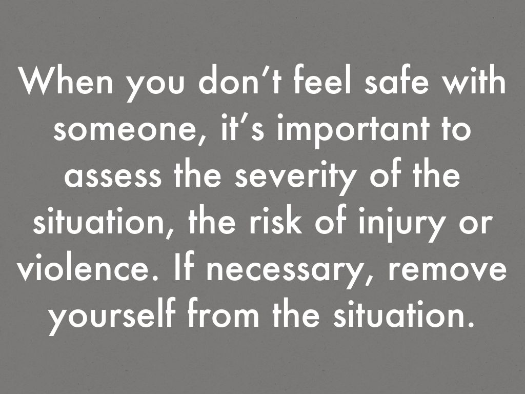 When you don’t feel safe with someone, it’s important to assess the severity of the situation, the risk of injury or violence. If necessary, remove yourself from the situation.