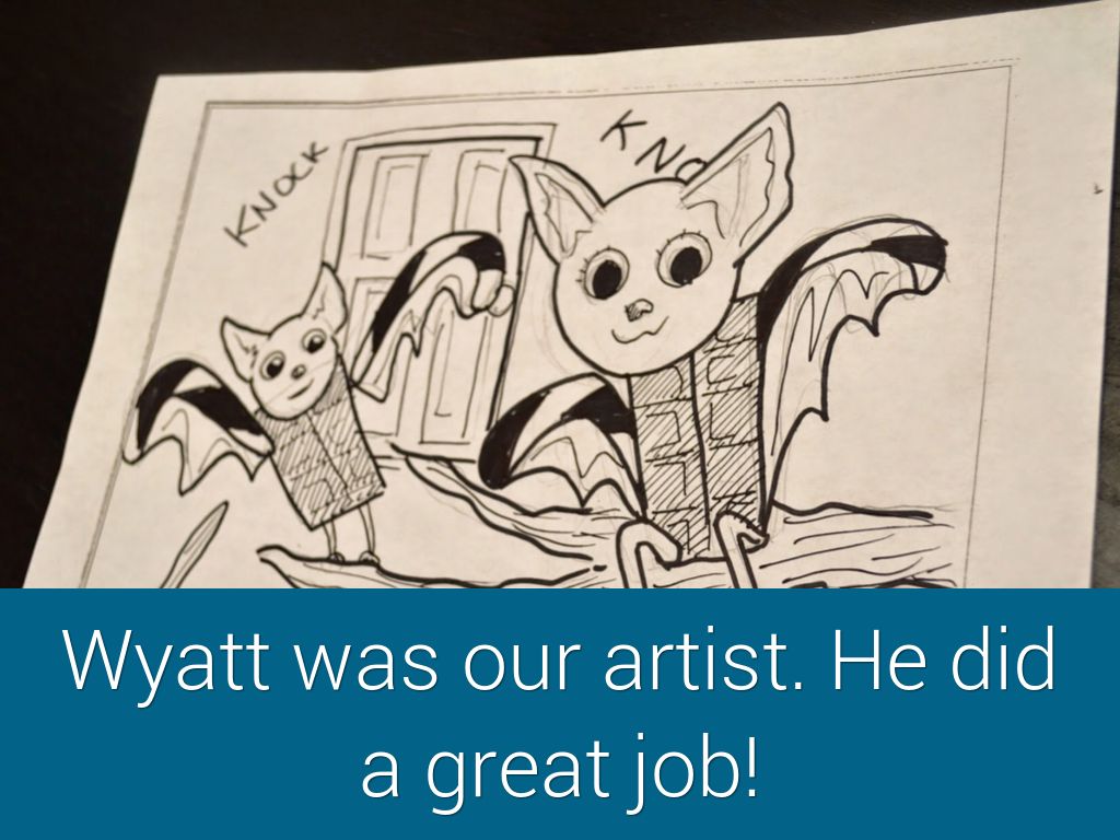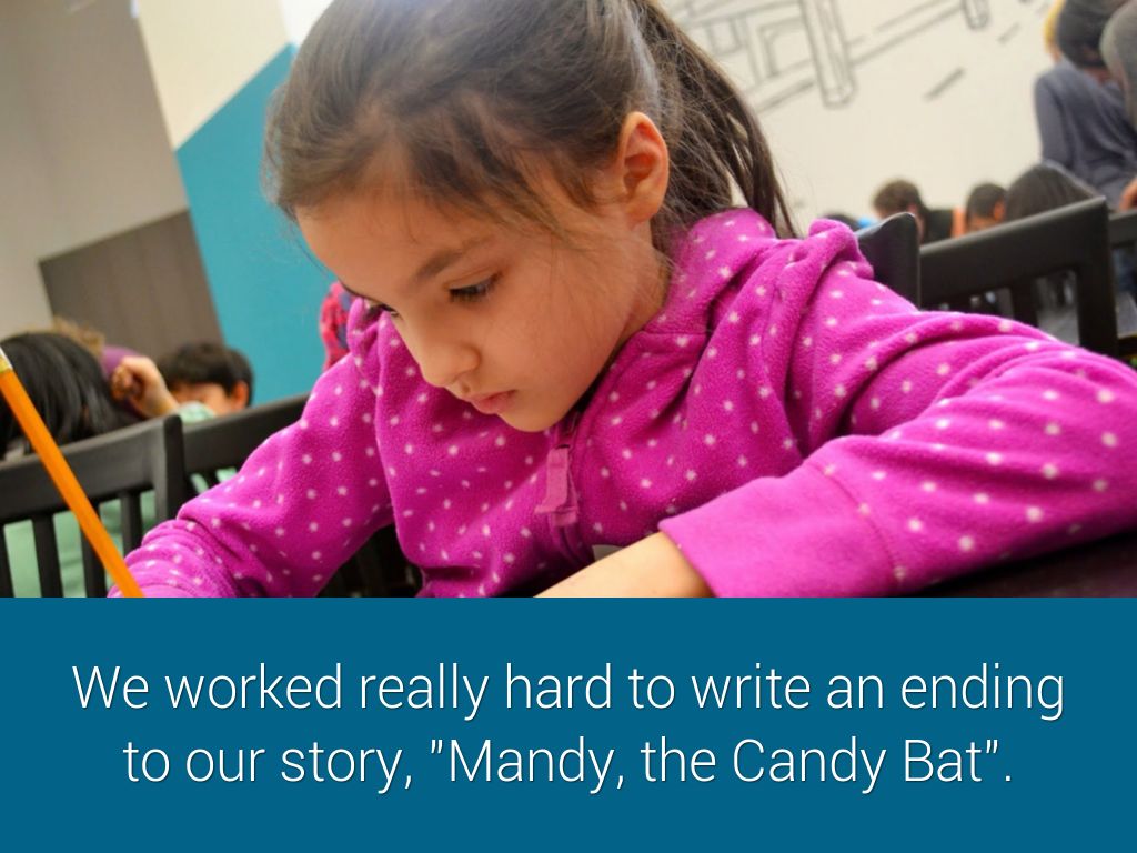 We worked really hard to write an ending to our story, "Mandy, the Candy Bat".