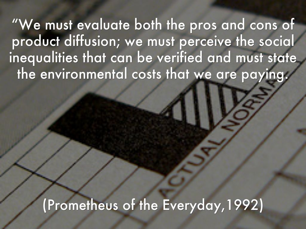 “We must evaluate both the pros and cons of product diffusion; we must perceive the social inequalities that can be verified and must state the environmental costs that we are paying. (Prometheus of the Everyday,1992)