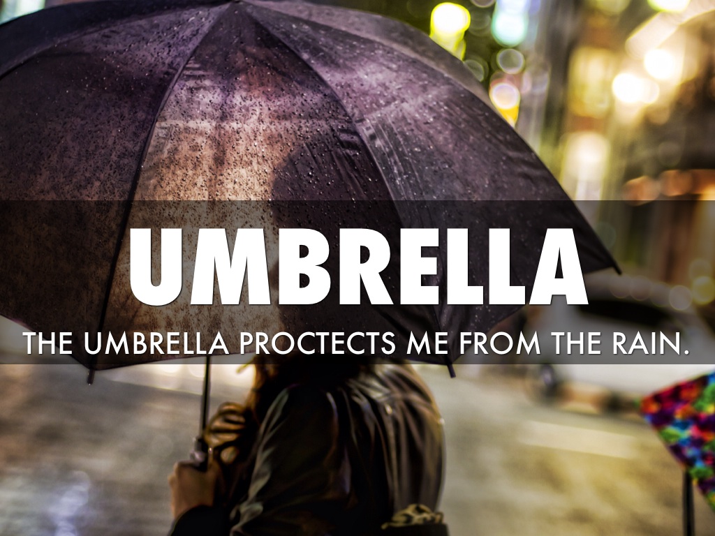 THE UMBRELLA PROCTECTS ME FROM THE RAIN.