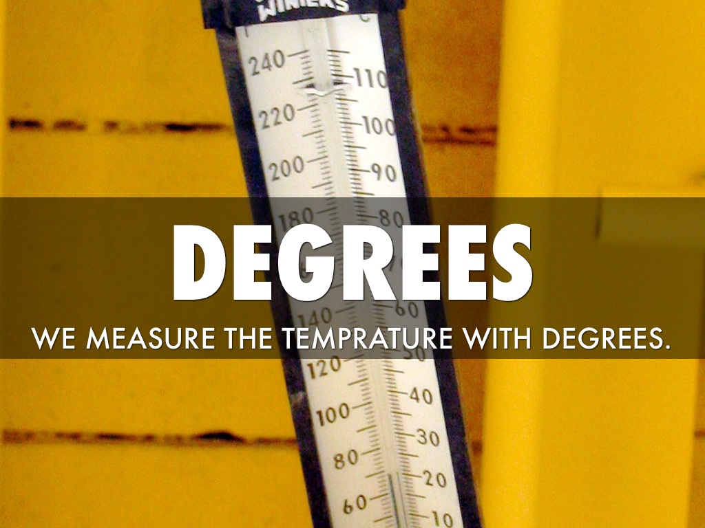 WE MEASURE THE TEMPRATURE WITH DEGREES.