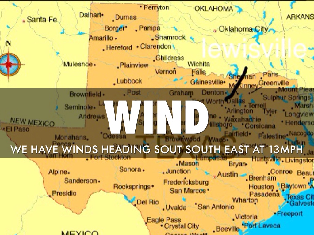 WE HAVE WINDS HEADING SOUT SOUTH EAST AT 13MPH